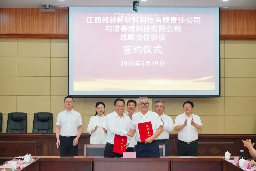 2025年5月19日,在江西龙南市,三孚新科旗下邦越新材与欧洲储能科技企业诺赛博(Noceb Tech AB)正式签署战略合作协议,双方将就半固态高安全电池关键材料进行产业化合作,共建联合检测实验室。
