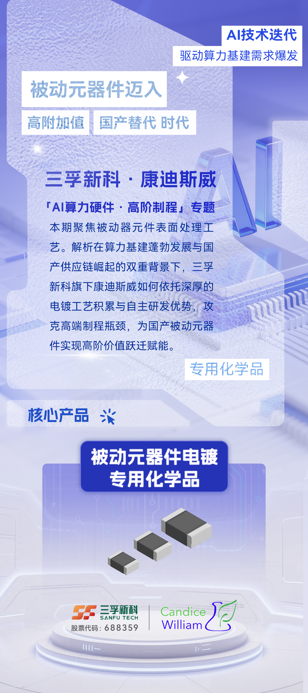 三孚新科旗下中山市康迪斯威科技有限公司,专业从事电子领域专用化学品的研发、生产及技术服务,在被动元件表面处理领域有着深厚的技术和应用积累。
