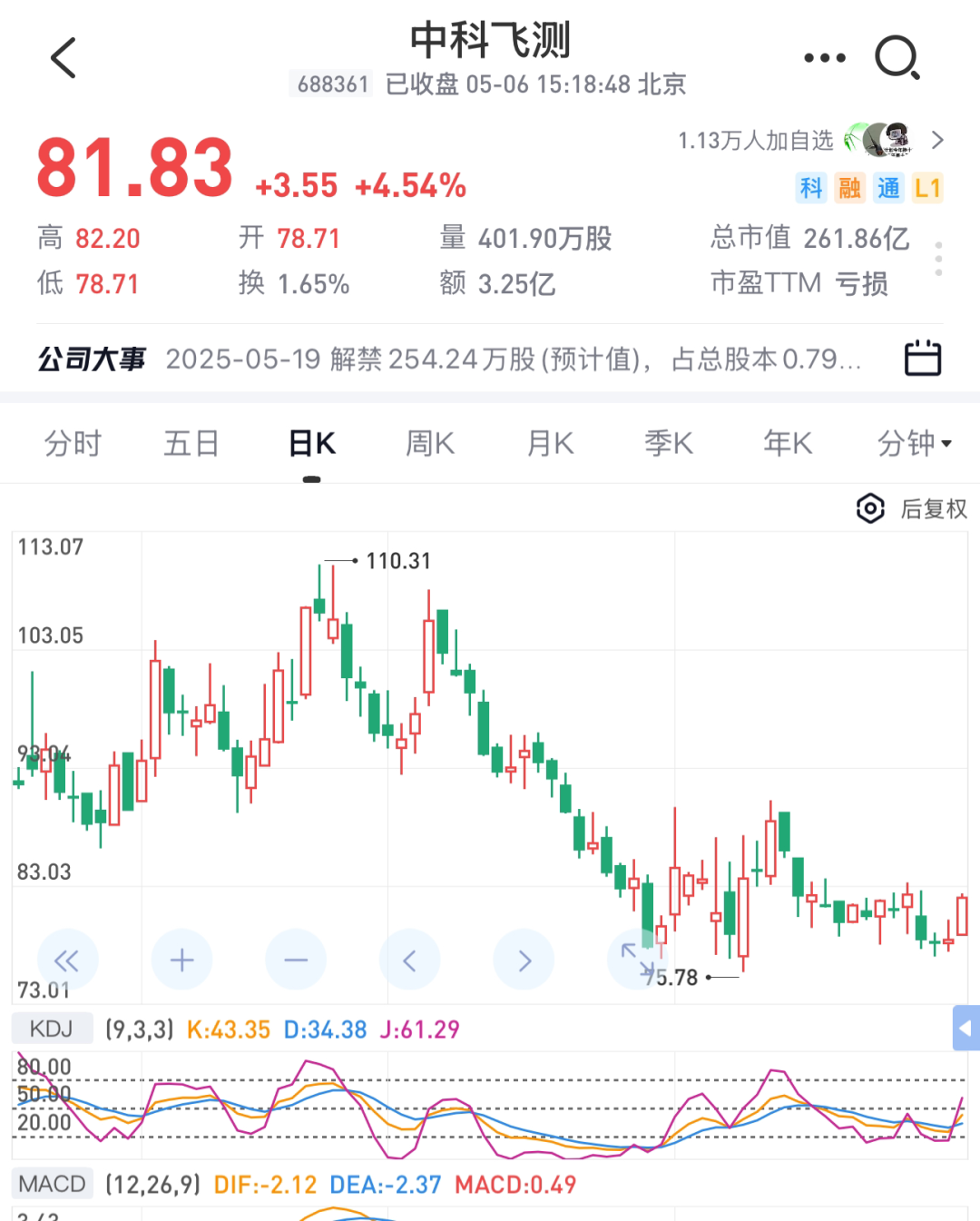 注意:中科飞测5月7日将举行2024年度暨2025年第一季度业绩说明会。5月6日发布出货利好,股价表现今日涨4.5%。
