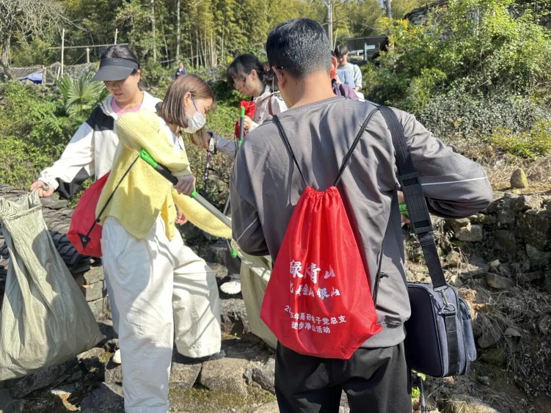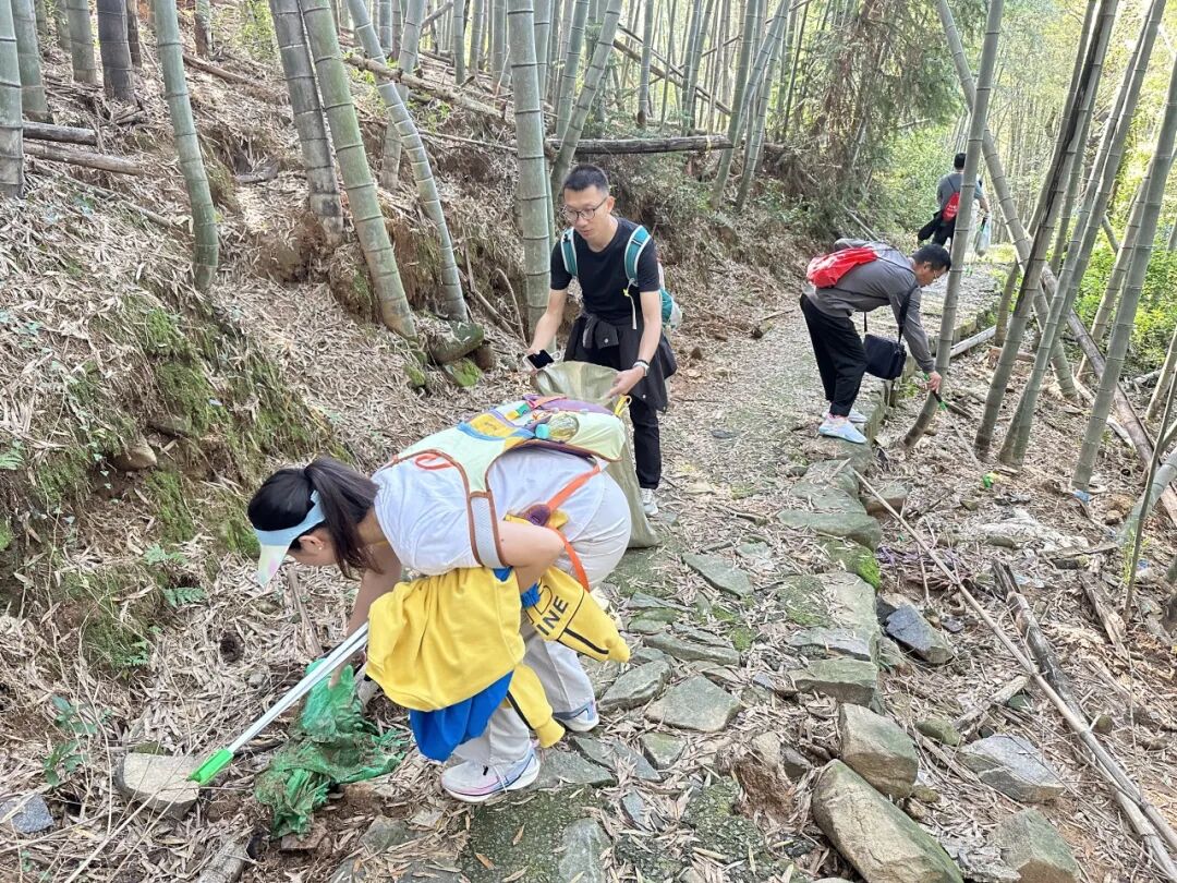 随着队伍深入古道,一幅生态画卷徐徐展开:树木参天,溪流潺潺,鸟鸣山幽。然而,在这片美景之中,不时可见被随意丢弃的塑料瓶、食品包装袋、烟蒂等垃圾,与自然环境显得格格不入。同志们立即行动起来,他们或弯腰拾取步道上的显眼垃圾,或深入草丛搜寻隐藏的污染物,或相互配合清理堆积的杂物。年长党员经验丰富,目光如炬,不放过任何一个死角;年轻党员身手敏捷,干劲十足,专挑难清理的区域下手。