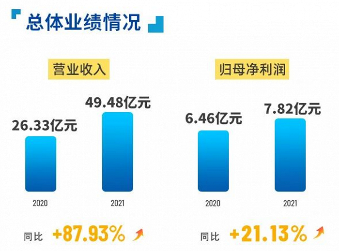 3月10日,华熙生物发布了2021年度报告。报告显示,华熙生物2021年的营业收入上升87.93%,达49.48亿元,归属于上市公司股东的净利润7.82亿元,同比增长21.13%。并且其经营活动产生的现金流量净额达12.76亿元,同比增幅80.97%。