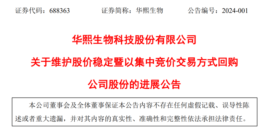 1月30日,股价在无明显利空的情况下突然杀跌,盘中一度跌逾14%,最终收跌10.62%。华熙生物回应,称公司股价大跌应该是融资盘强制平仓所致。随后,华熙生物在当日晚间发布了一则意在提振市场信心的公告,称已通过上海证券交易所交易系统以集中竞价交易方式累计回购公司股份220.76万股,占公司总股本4.82亿股的比例为0.4583%。回购成交的最高价为89.71元/股,最低价为57.05元/股,支付的资金总额为人民币1.52亿元(不含印花税、交易佣金等交易费用)。