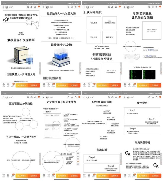 夸迪的“蓝次抛精华”主打成分为蓝铜胜肽,产品中使用了专利号为ZL202110215515.3的“专利复合抗皱肽”;繁妆的“蓝宝石次抛”核心成分也是蓝铜胜肽,商品详情页中介绍道,其使用的复合肽获中国发明专利,专利号也是ZL202110215515.3。