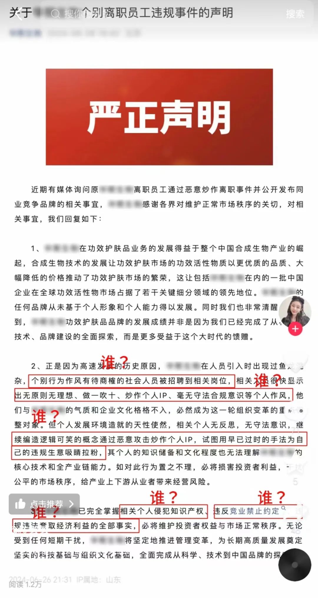 笔者大胆推测,华熙生物此次回应枝繁繁的真正目的,是为了内部的管理改革和树立公司形象,而非针对枝繁繁个人。华熙生物希望通过这次声明,表明公司对管理变革的决心,并维护公司的品牌形象。