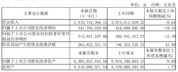 8月23日晚间,华熙生物发布半年报显示,2024年上半年公司实现营业收入28.11亿元,同比降低8.61%;归属于上市公司股东的净利润为3.42亿元,同比减少19.51%;归属于上市公司股东的扣除非经常性损益后的净利润为3.16亿元,同比降低12.38%。