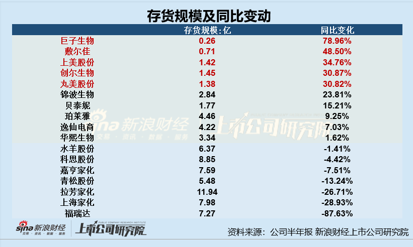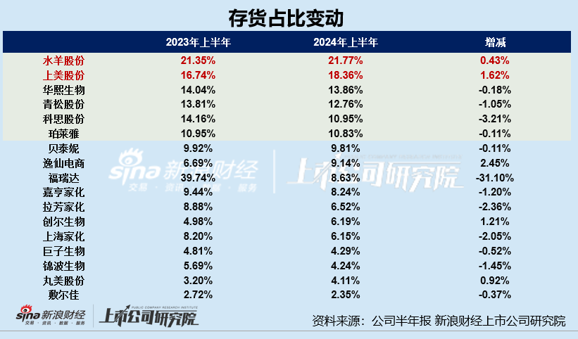 过半数上市公司存货规模有所上升仅上美股份存货规模、占比双增
