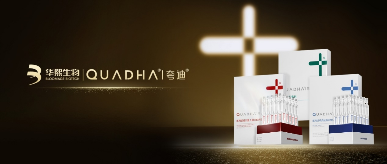 夸迪推出5款械字号医用敷料产品包括“绿十字系列”的皮肤修护敷料、“蓝十字系列”的医用透明质酸钠修复贴和修复液、“红十字系列”的医用重组III型人源化胶原蛋白修复贴和修复液。其中,“绿十字”系列和“蓝十字”系列的主要原料,均为华熙生物的新一代透明质酸;“红十字”系列主要原料为医用重组III型胶原蛋白,与人胶原序列100%同源。