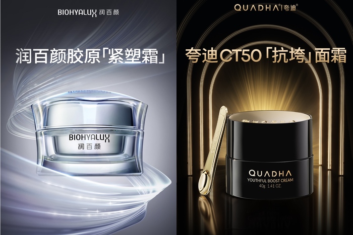 在产品落地方面,华熙生物旗下的润百颜和夸迪两大品牌应用再生医学技术的护肤产品“润百颜胶原紧塑霜”与“夸迪CT50抗垮面霜”也已经上市。