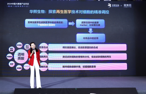 9月20日,在2024中国大颜值产业年会上,华熙生物董事长兼总裁赵燕发表主题演讲《生命科学颠覆美妆未来》,首次全面阐述了该公司在再生医学领域的布局与规划。这家以透明质酸为外界所闻名的企业,正试图将护肤品的功效提升到细胞和基因层面,开创美妆行业的新纪元。
