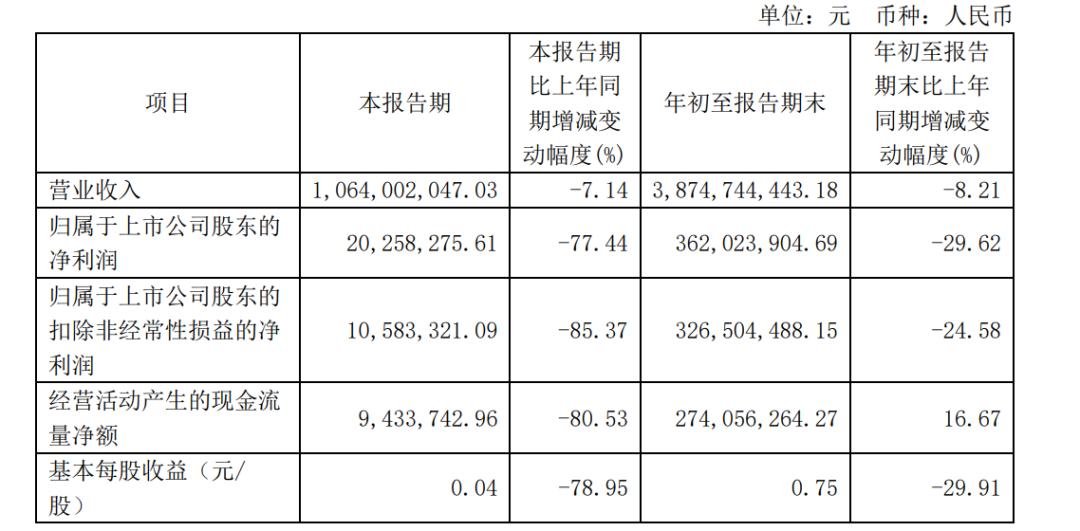 前三季度业绩连续下滑、大股东减持