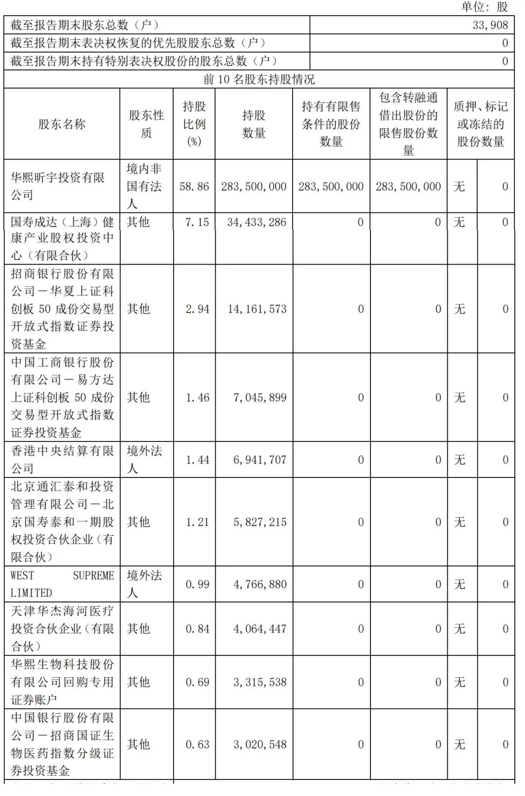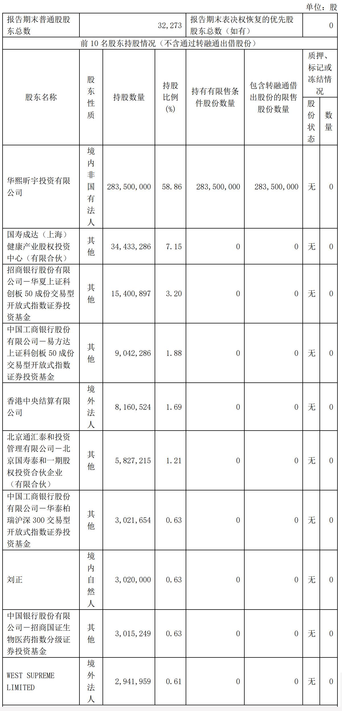 截至2024年6月30日,赵燕通过华熙昕宇投资有限公司持股为58.86%,国寿成达(上海)健康产业股权投资中心(有限合伙)持股为7.15%,招商银行股份有限公司-华夏上证科创板50成份交易型开放式指数证券投资基金持股为2.94%;