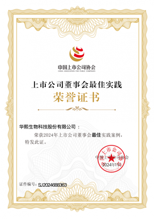 据悉,2024年“上市公司董事会最佳实践案例征集活动”经初审、专家委员会评审、诚信核查等环节,最终评选出2024上市公司董事会最佳实践案例120家、优秀实践案例247家、典型实践案例106家。继2023年荣获上市公司董事会优秀实践案例之后,2024年华熙生物再度荣获“上市公司董事会最佳实践案例”,获得上市公司协会的高度认可,充分印证了公司董事会在合规有效运作、提升公司治理效能方面的重要作用。