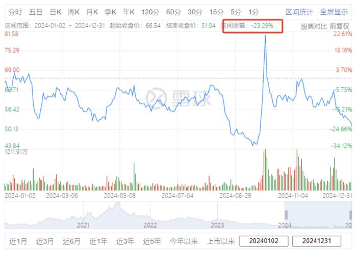 2024年,华熙生物的业绩和股价表现让投资者感到失望。