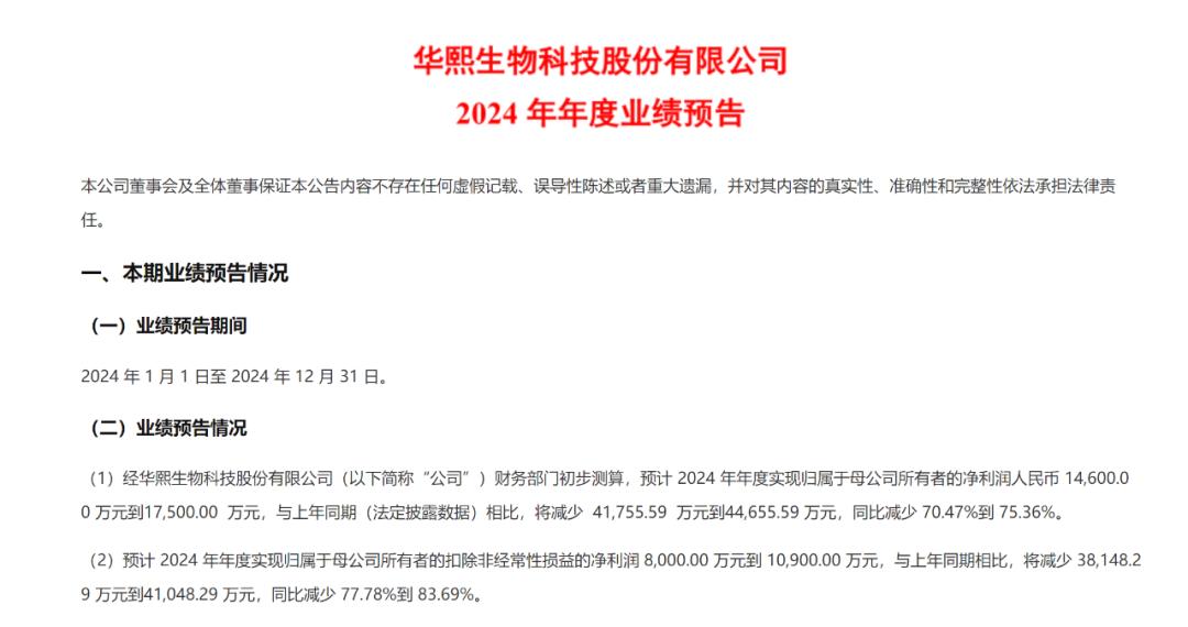 经历了一年的调整后,华熙生物披露了一份2024年度业绩预告。