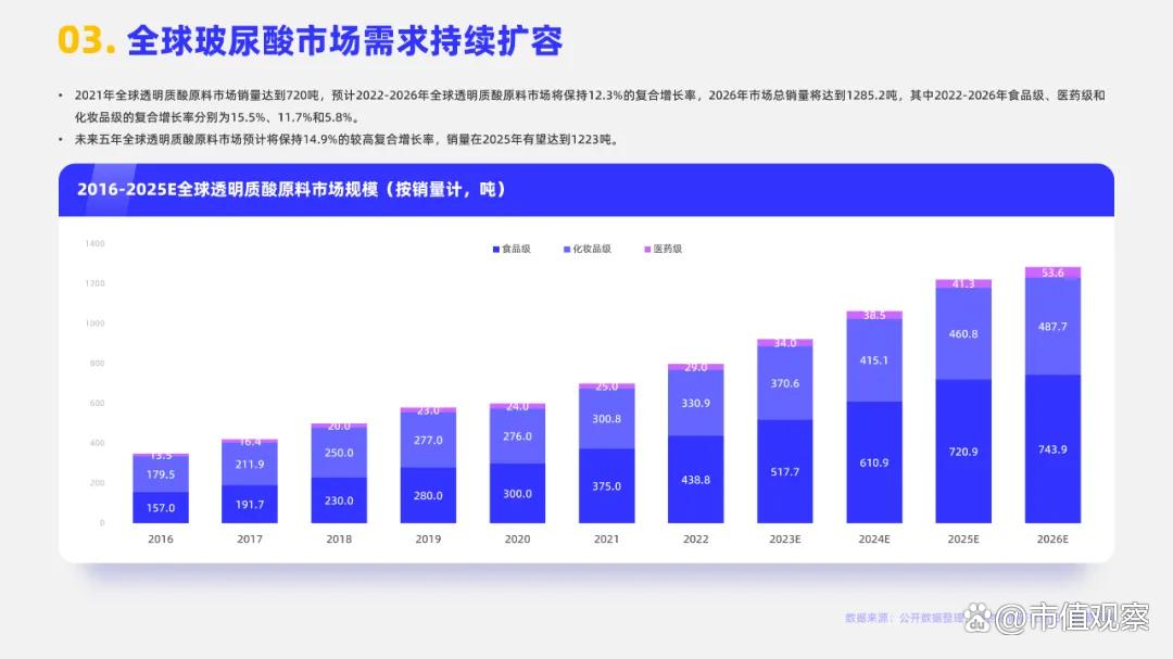 《市值观察》获悉,2023年,中国玻尿酸原材料市场规模仅增长9%,相较前些年双位数的“快跑”,已明显慢了下来。