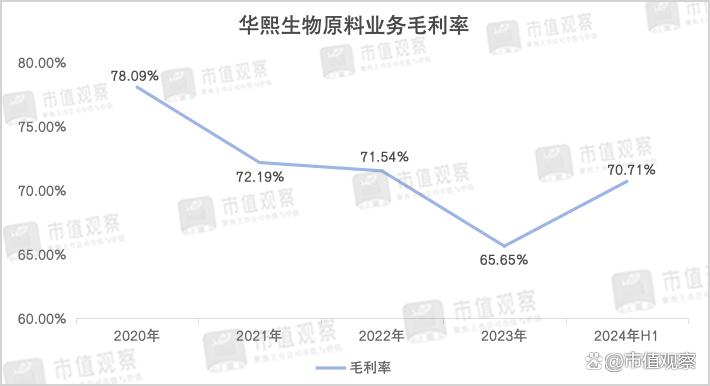 售价的不断走低,削弱其盈利能力。2020年-2024年上半年,公司原料业务的毛利率分别为78.09%、72.19%、71.54%、65.65%、70.71%,整体呈向下趋势。