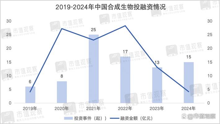 另据公开资料,2024年,中国合成生物投融资事件共15起,筹资金融约4.12亿元,相较活跃期的2022年,分别减少10起、19亿元。