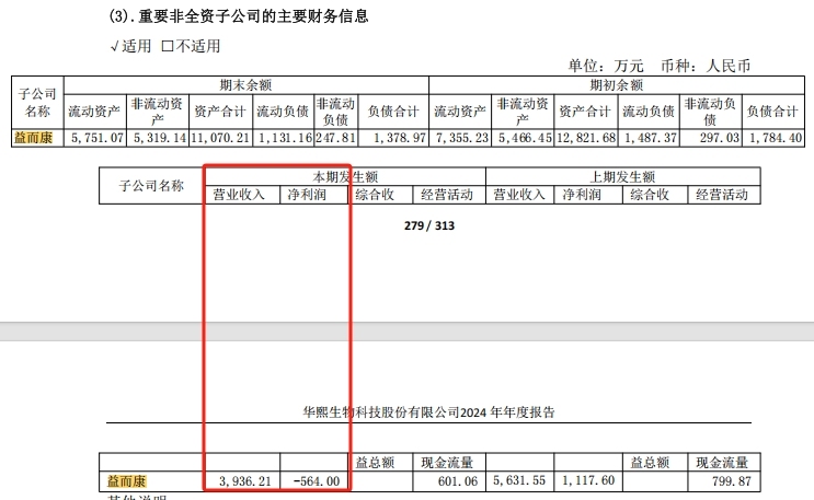 2022年,华熙生物收购北京益而康生物工程有限公司(简称“益而康”)51%的股份,布局胶原蛋白产业。2024年,益而康营收3936.21万元,净亏损564万元。对公司业绩产生影响。