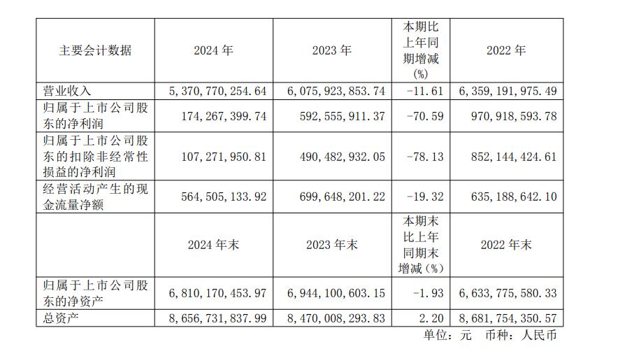 与之对应,2024年华熙生物在营收、净利上出现了双降的情况,营收较去年同期的60.75亿元,同比下降11.61%,净利上较去年同期的5.92亿,骤降 78.13%至1.07亿元,而如果将时间线拉长来看,这种营收、净利双降的趋势,至少从2023年便已经有所体现。