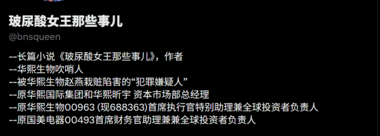 “玻尿酸女王那些事儿”自述:“我不是’涉案前员工’,我是2019年向证监会举报你们的华熙生物吹哨人,也是被你们构陷的前员工”。