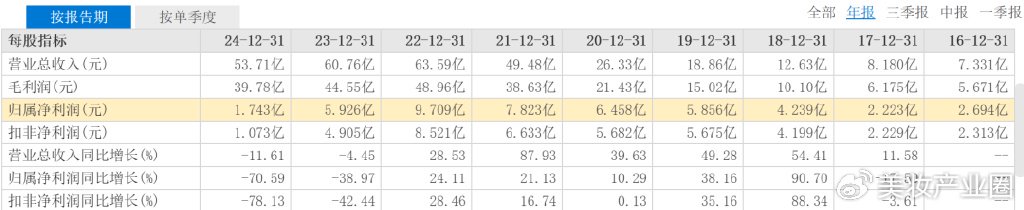 据美妆产业圈梳理,2018-2022年间华熙生物业绩保持稳定增长,但2023年首次出现营收与净利润双降,2024年这一下滑趋势仍在延续。