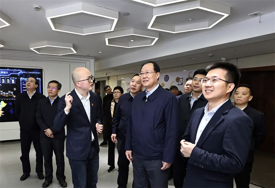 ▲毛伟明一行在光云科技考察(湖南新闻联播画面)