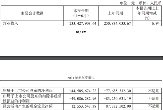 光云科技(688365.SH)近日披露的2023年半年度报告显示,公司上半年实现营业收入2.33亿元,同比下降6.94%;归属于上市公司股东的净利润-4458.57万元,上年同期为-7768.53万元;归属于上市公司股东的扣除非经常性损益的净利润-4908.63万元,上年同期为-8325.06万元;经营活动产生的现金流量净额-1255.35万元,上年同期为-8733.25万元。