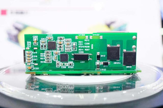 方案侧面的小板焊接协议芯片和输出接口以及整流桥。