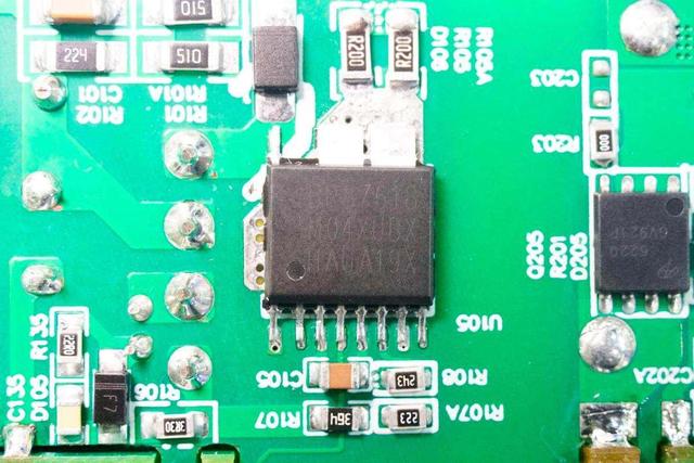 这款33W快充方案采用两块PCB焊接组成,协议芯片和磁耦控制芯片焊接在垂直小板上。