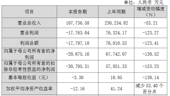 去年,公司基本每股收益-3.30元,同比下降130.14%;加权平均净资产收益率-12.16%,同比减少53.40个百分点。