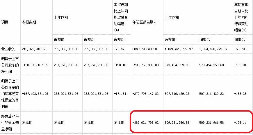 据公司2022年三季报,年初至报告期末,公司经营活动产生的现金流量净额-3.83亿元,同比减少175.14%。