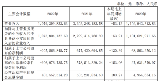 晶丰明源4月8日披露2022年年度报告显示,2022年,晶丰明源营实现营业收入10.79亿元,同比下降53.12%;归属于上市公司股东的净利润-2.06亿元,同比下降130.39%;归属于母公司所有者的扣除非经常性损益的净利润-3.07亿元,同比下降153.06%;经营活动产生的现金流量净额-4.06亿元,同比下降180.27%。