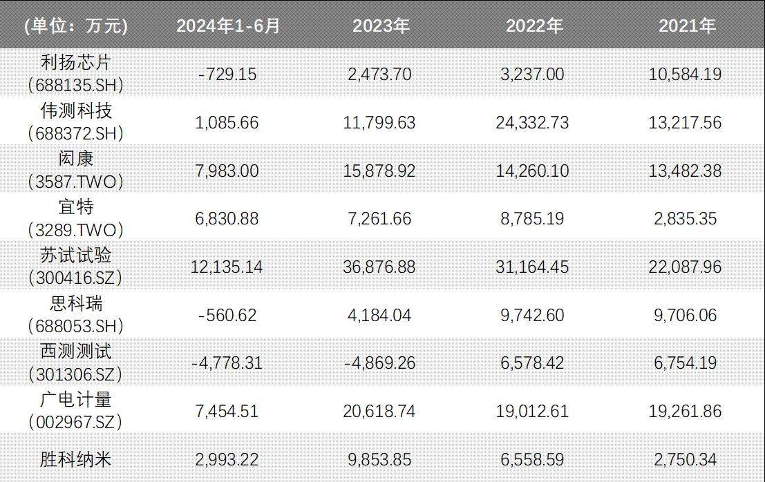 不过,业内不止公司一家企业存在盈利波动的问题。根据胜科纳米披露的招股书以及和讯网整理的2021年至2024年1-6月,9家同业公司的净利润数据显示。绝大部分同业公司从2023年或2024年起出现净利润水平下降。其中有3家企业由盈转亏,另有3家企业的2023年净利润显著降低,4家企业2024上半年净利润未达到2023年的一半。