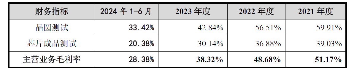 对此,公司解释称,主要因为2021年及2022,集成电路行业处于景气周期,晶圆测试和芯片成品测试两项业务均处于良好的盈利水平。2023 年开始,集成电路行业进入了下行周期,部分客户和产品的测试服务价格下降5%-15%的幅度;以及公司产能扩张,相应折旧摊销导致成本的增加,造成了毛利率的下降。