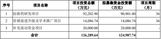 盟科药业本次发行募集资金总额106,080.00万元,扣除发行费用后,募集资金净额为95,972.79万元。盟科药业最终募集资金净额比原计划少29,014.95万元。盟科药业于2022年8月2日披露的招股说明书显示,公司拟募集资金124,987.74万元,分别用于创新药研发项目、营销渠道升级及学术推广项目、补充流动资金项目。