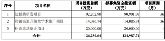 盟科药业本次发行募集资金总额106,080.00万元,扣除发行费用后,募集资金净额为95,972.79万元。盟科药业最终募集资金净额比原计划少29,014.95万元。盟科药业于2022年8月2日披露的招股说明书显示,公司拟募集资金124,987.74万元,分别用于创新药研发项目、营销渠道升级及学术推广项目、补充流动资金项目。