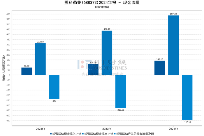 现金流量数据显示,经营活动现金流入小计1.4亿元,流出小计5.87亿元,净额为-4.47亿元,同比下降,因临床、生产原料采购及销售推广费用增加。投资活动现金流量净额5.15亿元,同比增加53.84%。筹资活动现金流量净额68.09百万元,较上年同期显著改善。
