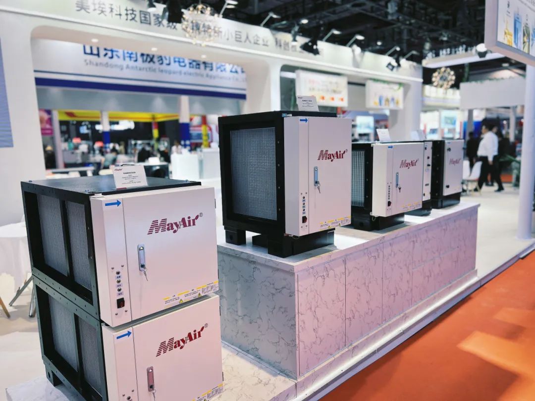 作为空气净化行业领军企业,美埃科技本次展品涵盖了除油烟静电过滤器、智能自动清洗系统、静电过滤器、新风净化等一系列产品。其中,静电复合式烟罩一体机和除油烟静电过滤器,分别从过滤效率和低能耗两大方向发力,成为全场亮点。