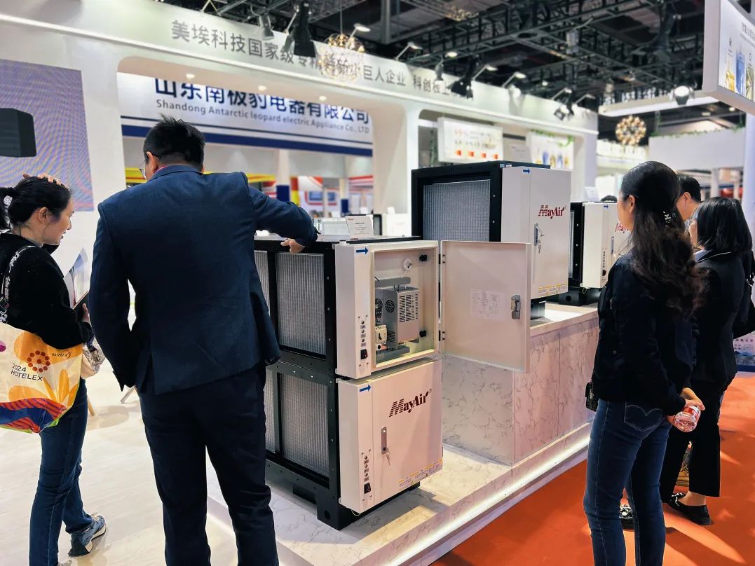 现场,美埃科技展位人潮流动,从接待区到产品展示区,每一处角落都有客户咨询洽谈的身影。美埃团队则以饱满的热情和细致的服务,为每一位观展来宾提供贴心的讲解,赢得参展观众一致好评。