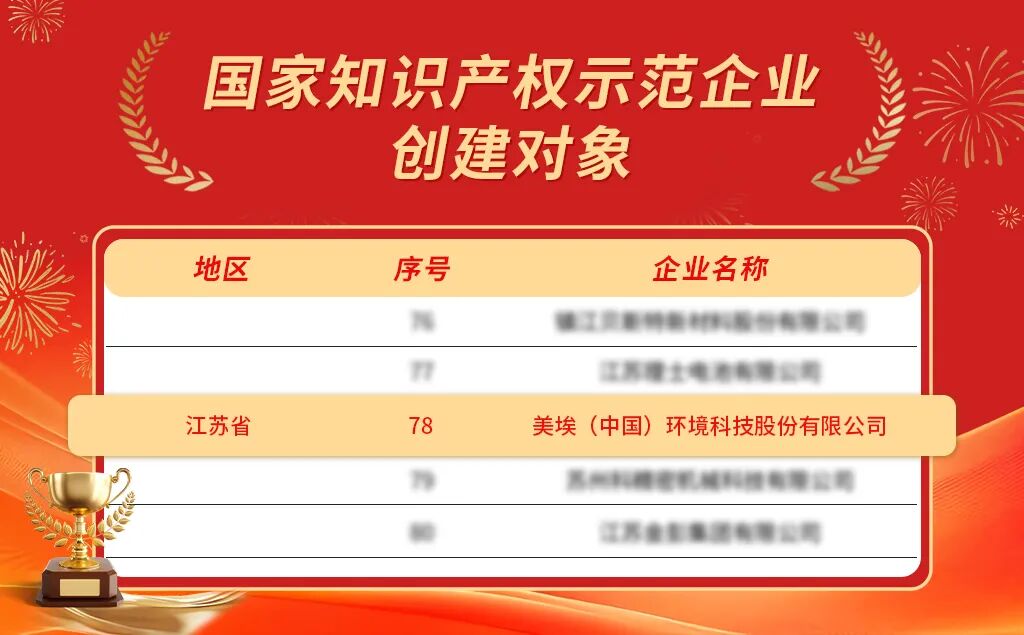 近日,国家知识产权局正式公示《2025-2027 年知识产权强国建设示范创建名单》,美埃科技凭借在知识产权创造、运用、保护和管理等方面的卓越表现,成功入选“国家知识产权示范企业创建对象”,斩获又一国家级重磅荣誉。