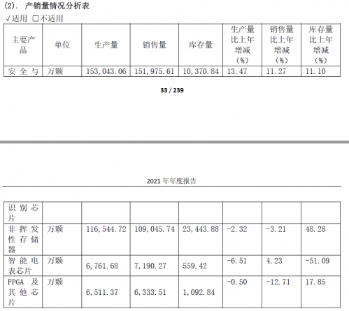 在产销量情况方面,公司整体产销率为97.06%,因产品市场供不应求,智能电表芯片产销率为106.34%,公司库存减少;其他产品产销率未达100%,库存量比上年有所增长。