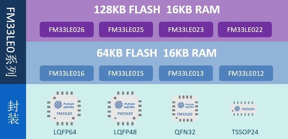复旦微电子今日推出基于ARM cortex M0内核的FM33LE0系列MCU产品家族。该系列是FM33LC0系列的成本友好版本,在保证硬件兼容FM33LC0系列的基础上,复旦微MCU团队对其片上存储资源和外设资源进行了更加精准的规划,并且优化部分功能,使其与客户端的需求契合度更高,从而为客户端的产品研发提供了更多的可能性。