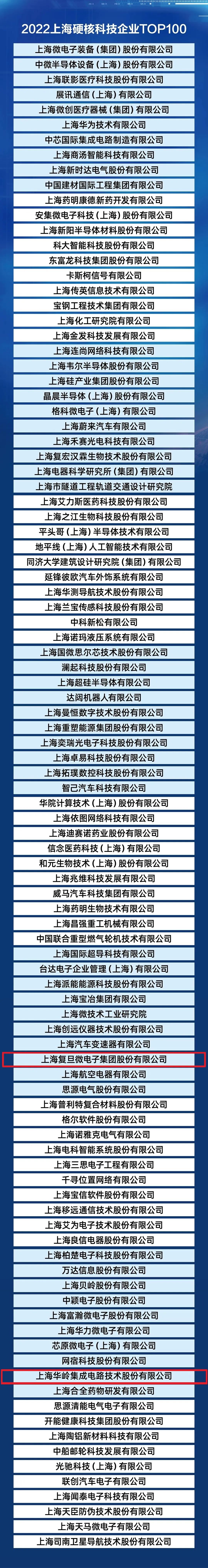 上海复旦微电子集团股份有限公司及旗下控股子公司上海华岭集成电路技术股份有限公司荣登榜单。