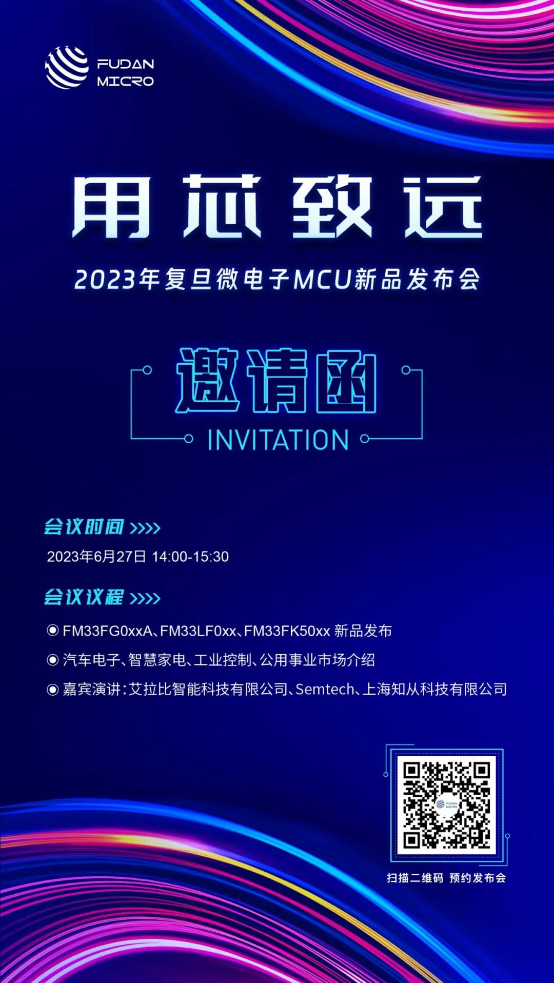6月27日 14:00,复旦微电将举办“用芯致远”MCU新品线上发布会,会上将详细介绍产品FM33FG0xxA系列、FM33LF0xx系列和 FM33FK50xx系列参数细节及应用领域。