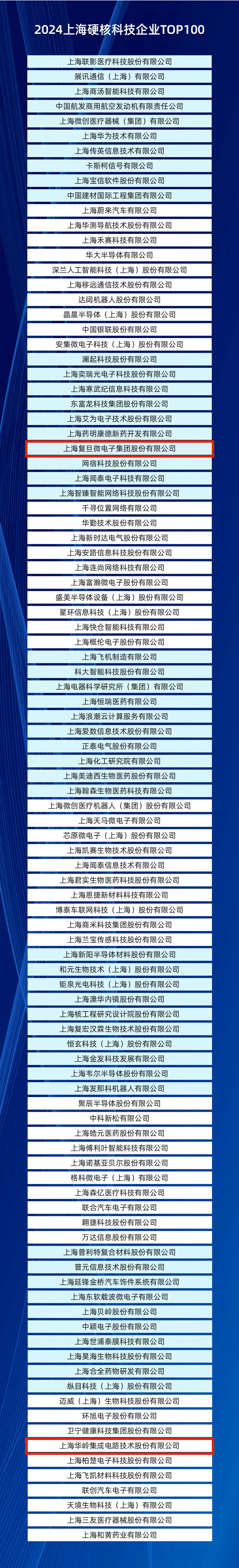 继2022年、2023年之后,上海复旦微电子集团股份有限公司及旗下控股子公司上海华岭集成电路技术股份有限公司再度双双荣登榜单。