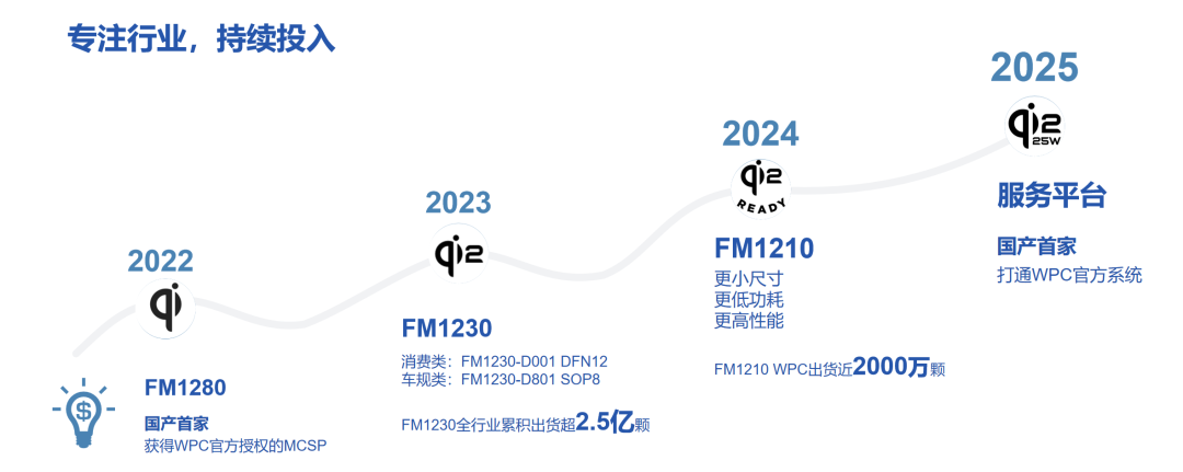 此外,FM1210 在功耗和运行效率方面表现突出,具备更低功耗和更快运算速度,成为追求卓越用户体验企业的理想选择。自去年秋季上市以来,该芯片迅速获得市场认可,仅在Qi标准产品中的出货量已接近2000万颗。