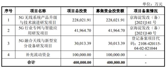信科移动全额行使超额配售选择权之后的实际募资净额比原拟募资多61704.25万元。公司9月21日披露的招股书显示,信科移动拟募资40.00亿元,分别用于5G无线系统产品升级与技术演进研发项目、5G行业专网与智能应用研发项目、5G融合天线与新型室分设备研发项目、补充流动资金。