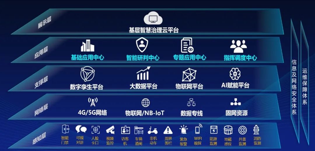 5G、物联网、数据专线、固网4网融合,实现人、事、地、物、情多元感知数据的采集,打造社会治理要素“全域覆盖、全时可用”的数据基座。