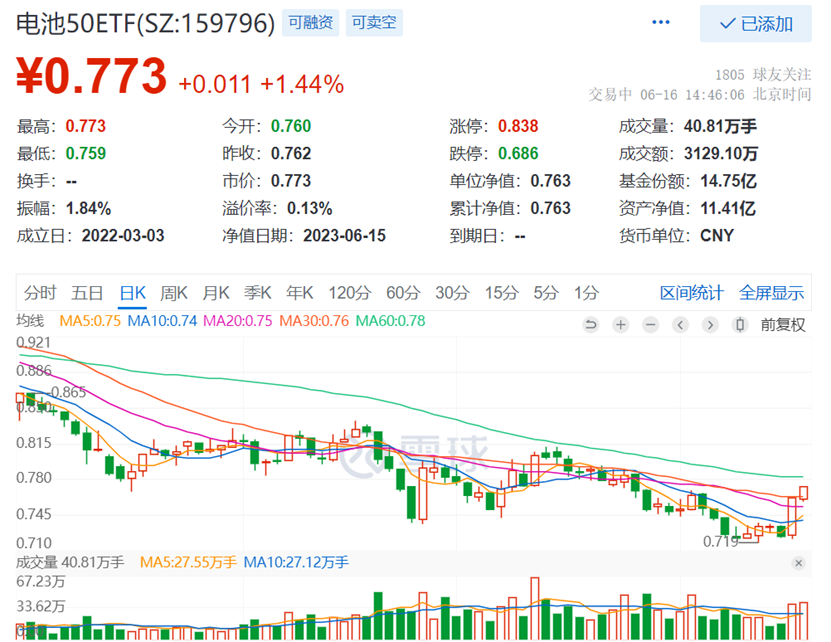 热门ETF方面,细分赛道头部品种电池50ETF(159796)再度回暖涨1.44%,成交额超3100万元,强势突破30日均线,交投进一步放量!