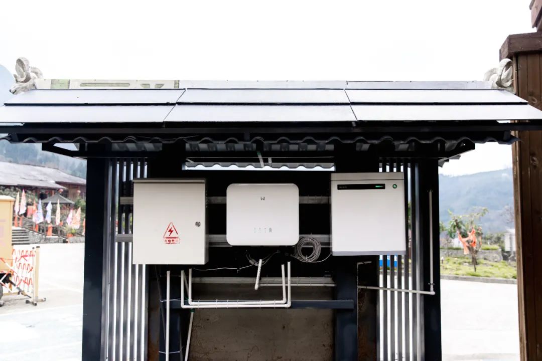 固德威一直致力于为乡村新能源发展贡献力量,为了支持石椅村的新型电力展示点,成都三圣光伏新能源科技有限公司联合固德威共同捐建该项目。固德威工程师根据石椅村现场环境和实际用电需求,决定采用ES-3.6KW储能逆变器搭配Lynx U-5.4kWh低压电池的?体化光储系统解决方案,并网后预计年发电量2700kWh,可以有效利用光储充绿色电力解决充电驿站的用电,为羌寨的充电驿站提供24小时绿电,打造为羌族特色“乡村家具”,融进羌寨新风貌。